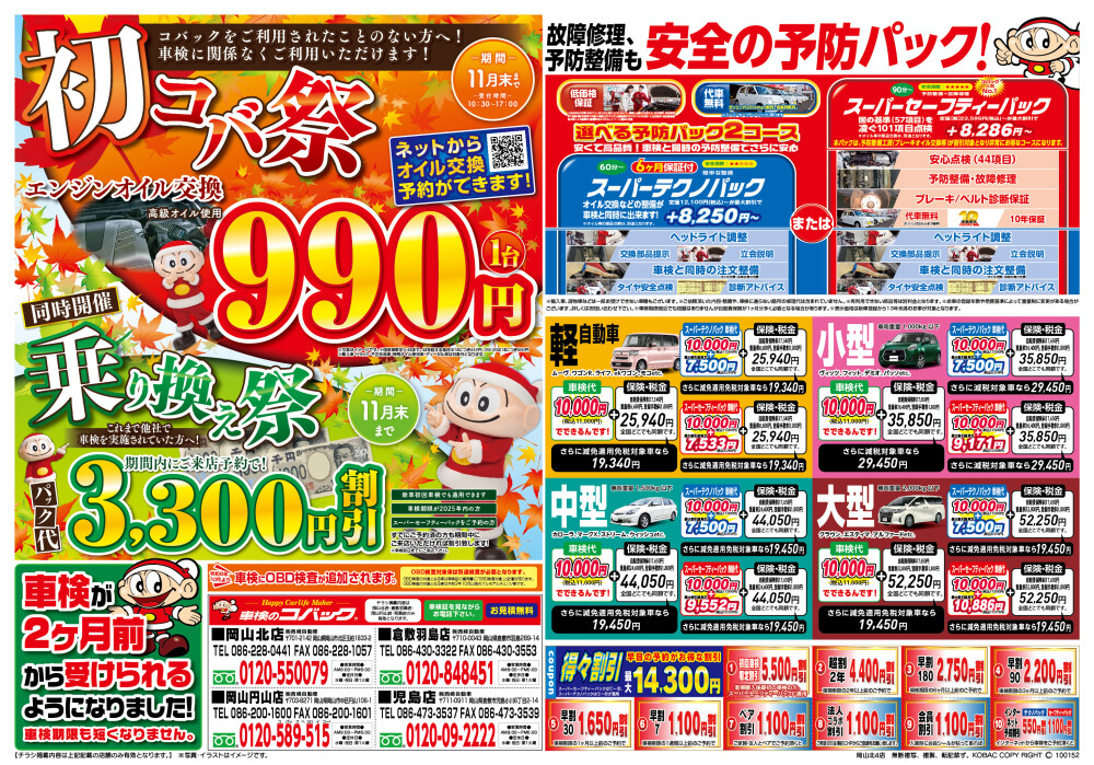 株式会社西崎自動車は 倉敷市で 車検のコバック倉敷羽島店・児島店を運営しております。 倉敷市にある 車検のコバック倉敷羽島店・児島店の車検受付時間やアクセス方法をご確認ください。